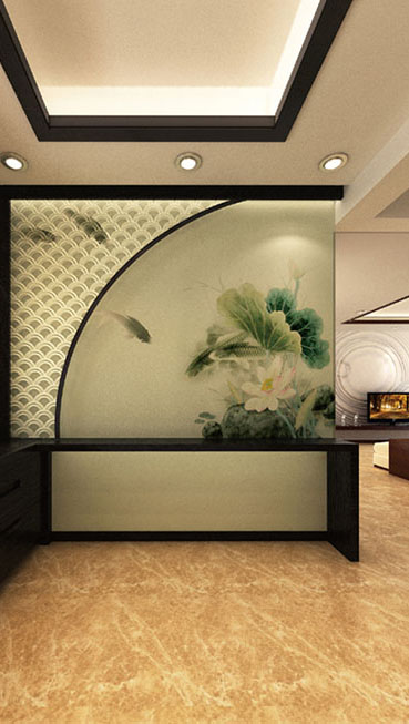 戶主李先生喜愛茶酒,而茶與酒都與水有關,所以整個設計都體現了水的靈動。家居中的魚缸不禁聯想到魚的元素,是吉祥如意的象征,希望一家能像魚兒一樣自由快樂,幸福生活,于是便有了這詩意的名字-魚悅居。